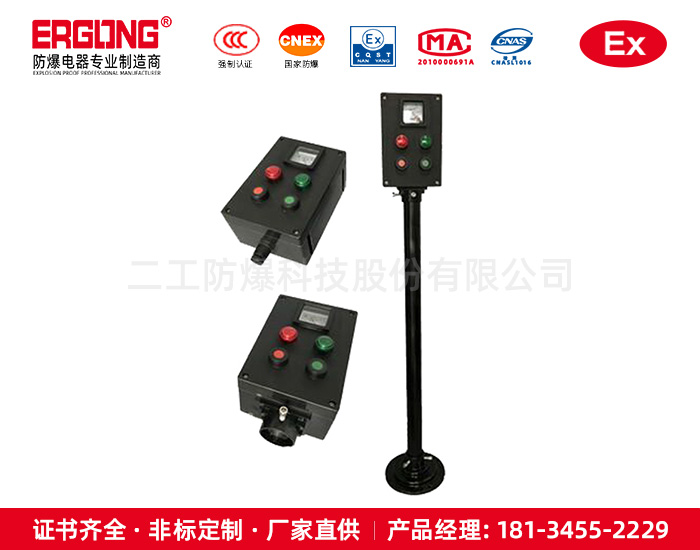 二工防爆,專業(yè)生產(chǎn)防爆電器、防爆燈具、防爆管件、防爆儀器儀表、不銹鋼防爆電器、防爆防腐電器、粉塵防爆電器和防水防塵防腐電器及燈具、防爆風(fēng)機(jī)、防爆空調(diào)、移動照明等產(chǎn)品、銷售及技術(shù)服務(wù)為一體的企業(yè)。
